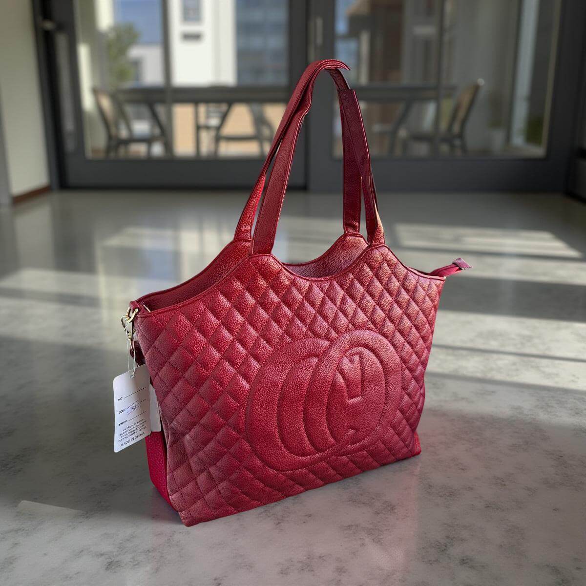 Gestepptes Damen Shopper Tote – Rot & Blau